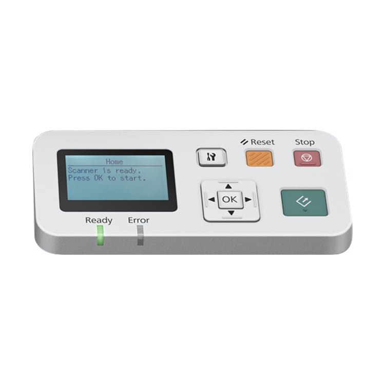 Features: Skip blank page, Pre-defined scanning settings, Automatic de-skew, Automatic multi-document recognition, Automatic B/W colour original detection, Dual Image Output (Windows only), Auto-rotation, Text enhancement, Edge fill, Unsharp Mask (USM), Book spine correction, Automatic Folder Creation, Barcode Recognition, Zonal OCR A & B support, Manual / Automatic Job Separation