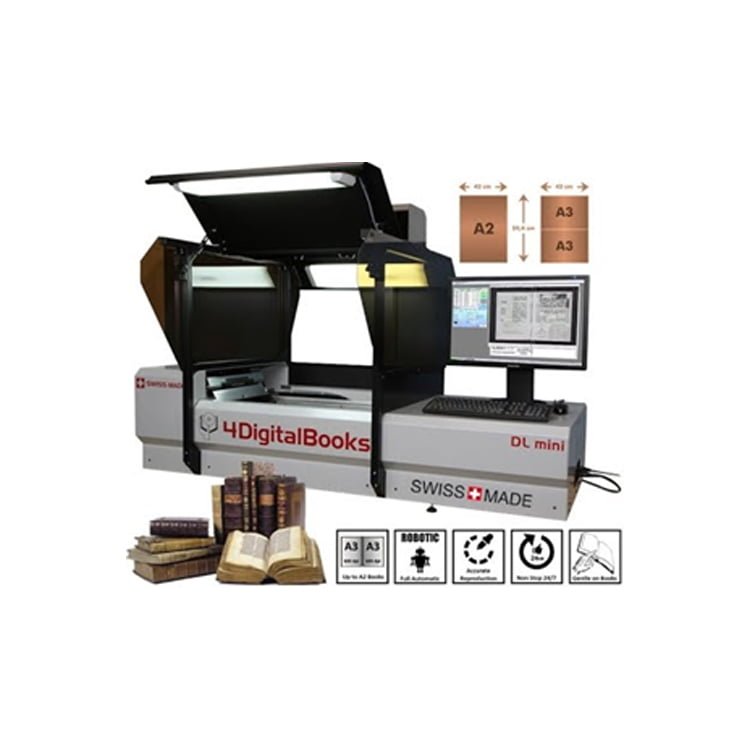 DL mini’s air-flow page turning process and air cushioned book cradle ensure gentle handling of books without applying pressure or tension on the spine.