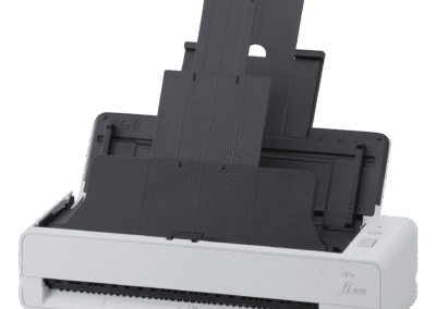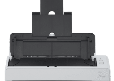 Equipped with ADF, the scanner scans A4-size documents continuously at a high speed of 40 ppm/80 ipm (color, 200 dpi/300 dpi). With U-turn Scan, documents are placed in from the top device to eject again from the top. The stacker automatically extends to provide neatly stacked output documents and returns to its original position once scanning has completed with Automatic Stacking Technology, so that users can easily start scanning their next batch. All these features enable the scanner’s space-saving design, allowing users to scan, organize and retrieve documents while multi-tasking with the other hand.